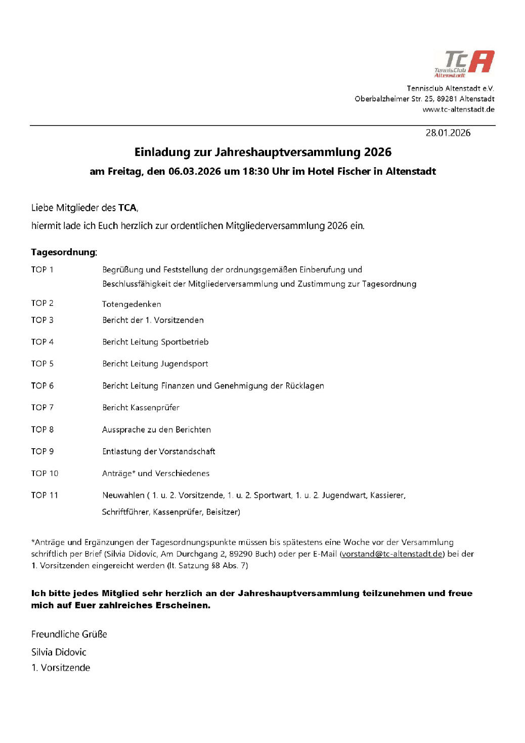 Jahreshauptversammlung 2026
